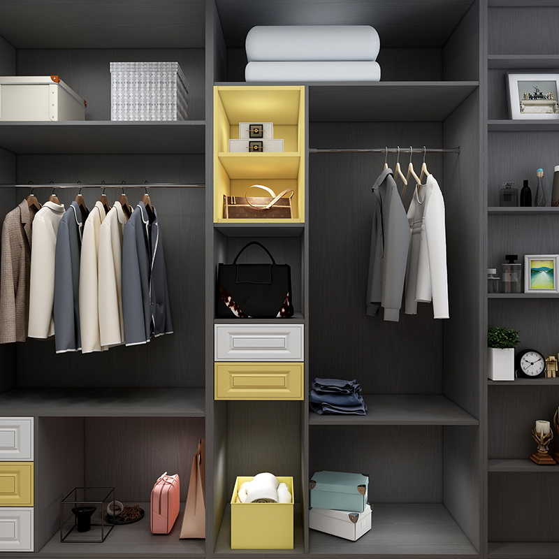 整體定制衣柜 蒙斯陽光·黑木卡其+玉石白衣柜