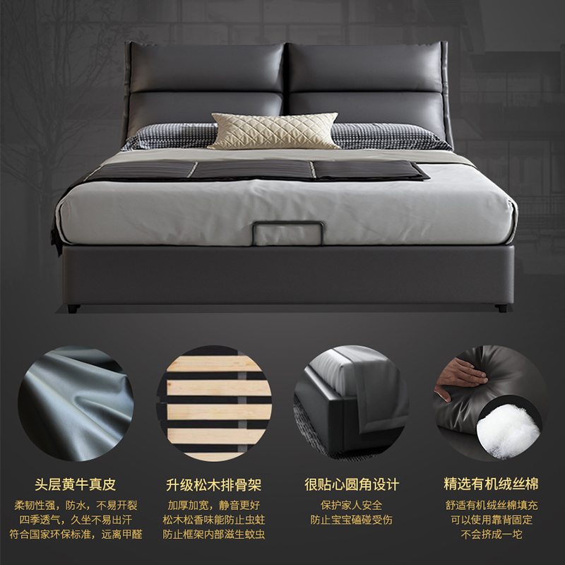 首頁 / 公司產品 / 現代簡約 頭層真皮軟床 夢之巴黎 YP603#