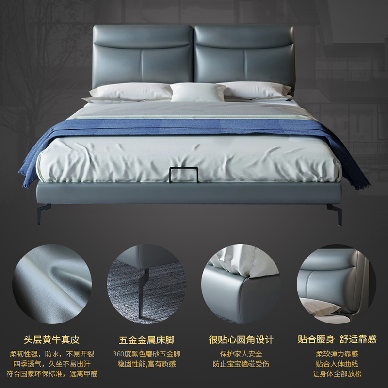 輕奢風(fēng)格 頭層真皮軟床 繁花彼岸 YP608